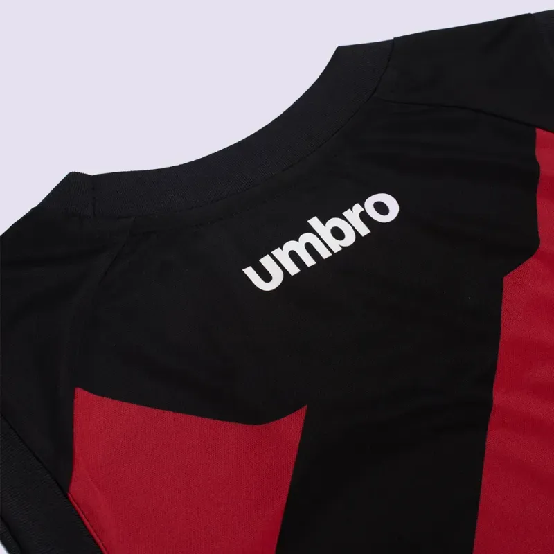 A Regata Masculina Oficial 1 2026 apresenta o visual do uniforme titular em uma versão mais leve e funcional. Mantém o padrão rubro-negro da temporada, com os mesmos elementos gráficos aplicados na camisa oficial.
