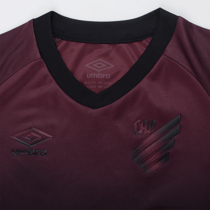 O Kit Infantil Athletico Oficial 3 2025, é produzido pela Umbro em homenagem às origens do Estado do Paraná. O design apresenta degradê do bordô ao preto, representando o ciclo do café, com a sigla “CAP”, detalhe retrô, e patch especial com o contorno geográfico do Paraná. Confeccionada com tecido leve e tecnologia de alta performance, proporciona conforto e excelente ventilação durante o uso.