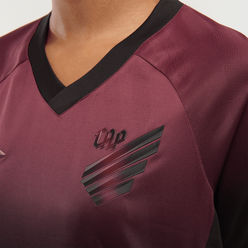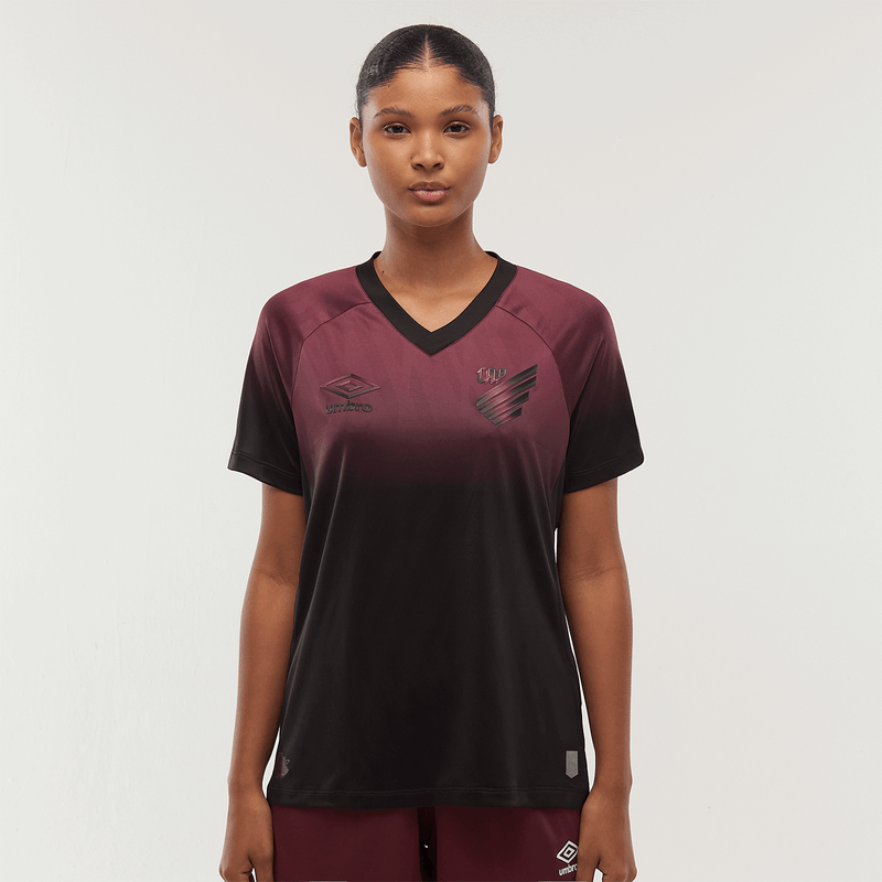A Camisa Feminina Athletico Torcedora Oficial 3 2025, é produzida pela Umbro em homenagem às origens do Estado do Paraná. O design apresenta degradê do bordô ao preto, representando o ciclo do café, com a sigla “CAP”, detalhe retrô, e patch especial com o contorno geográfico do Paraná. Confeccionada com tecido leve e tecnologia de alta performance, proporciona conforto e excelente ventilação durante o uso.