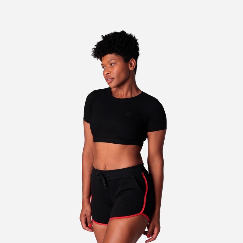 Cropped preto Athletico com escudo bordado e manga curta. Confeccionado em tecido confortável, ideal para uso casual.