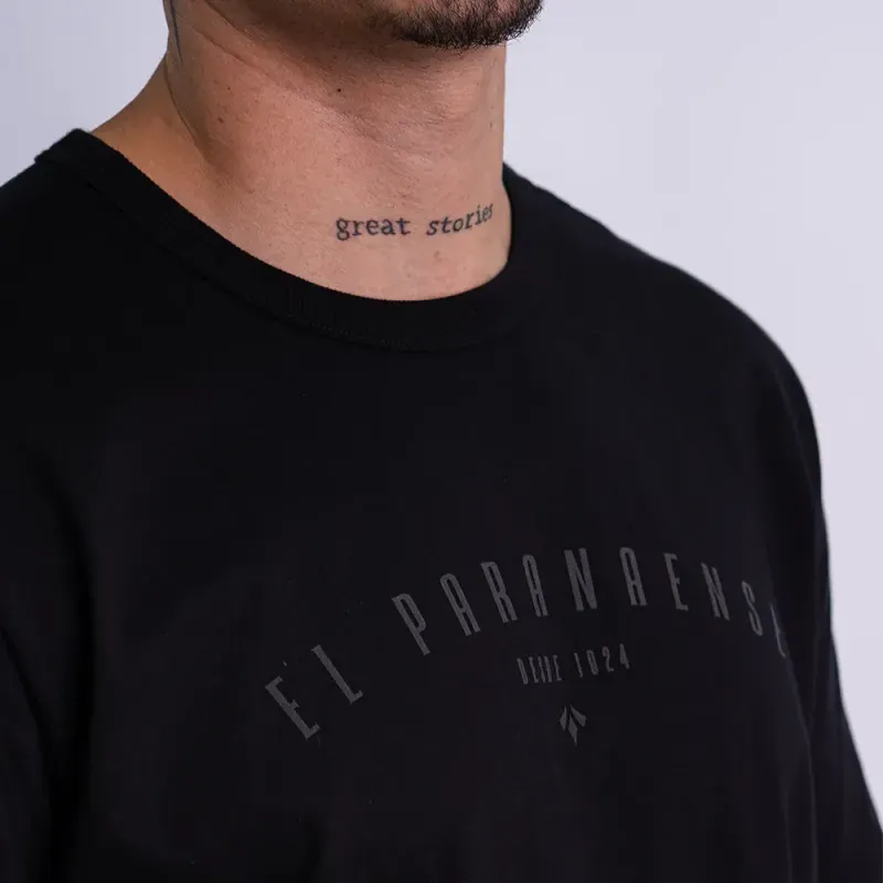 O design destaca o lettering El Paranaense aplicado em silk com relevo de alta qualidade no peito, reforçando um dos nomes mais emblemáticos do clube e sua presença no cenário internacional. O visual minimalista valoriza a tradição do Furacão em uma proposta contemporânea e urbana.