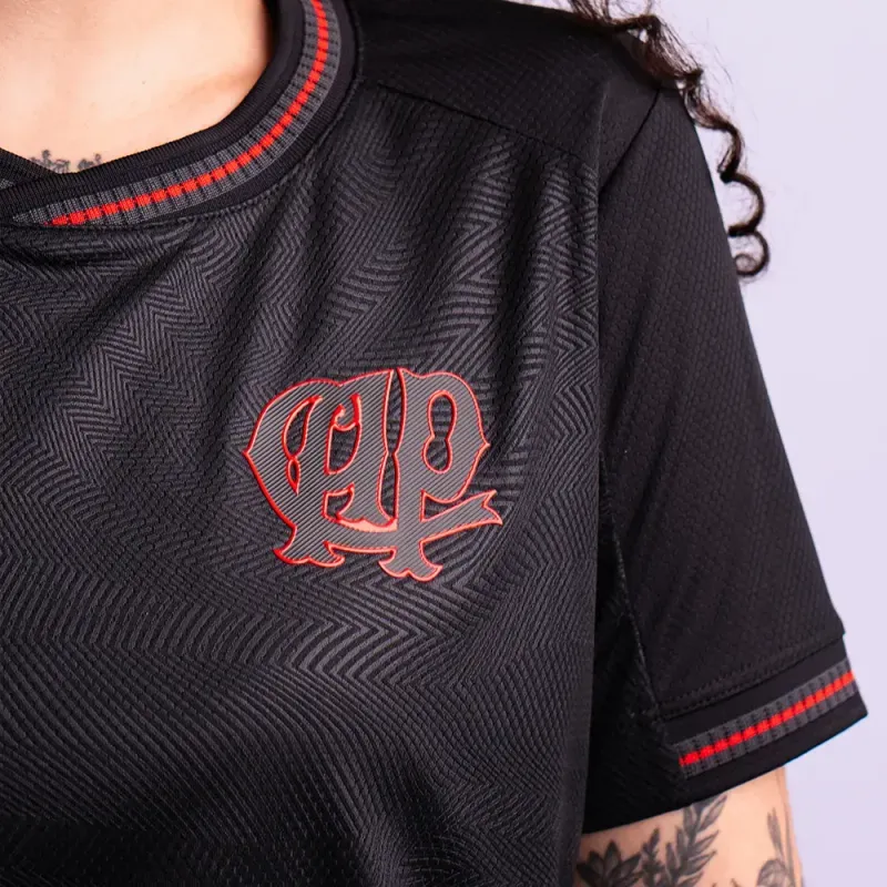 Criada para quem vive o clube além dos 90 minutos, ela traduz pertencimento em um visual versátil, perfeito para o dia a dia. A modelagem feminina garante conforto e caimento ideal, valorizando estilo sem abrir mão da essência rubro-negra.