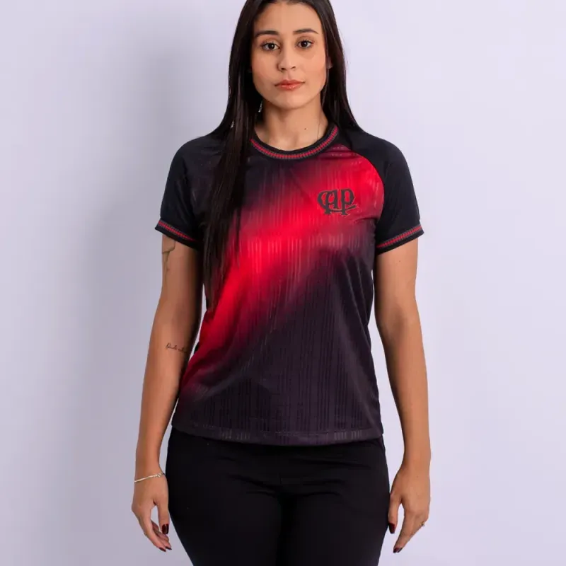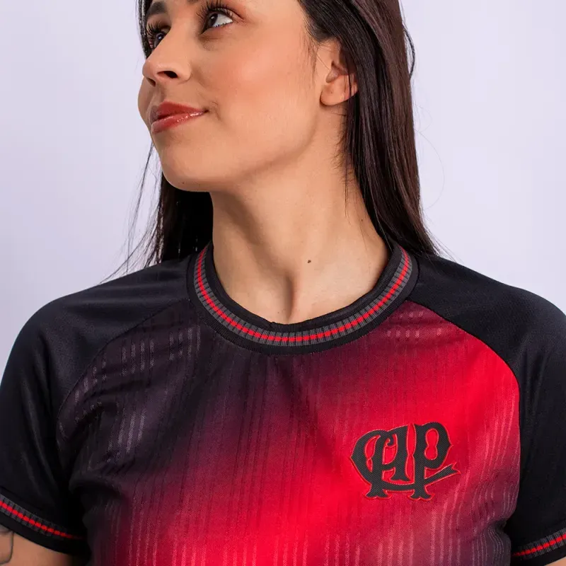 A Camiseta Feminina Legado Furacão Red combina design contemporâneo com a essência do Athletico. Produzida com frente em jacquard e corpo em tecido trabalhado, proporciona uma rica variação de texturas que eleva o visual da peça.