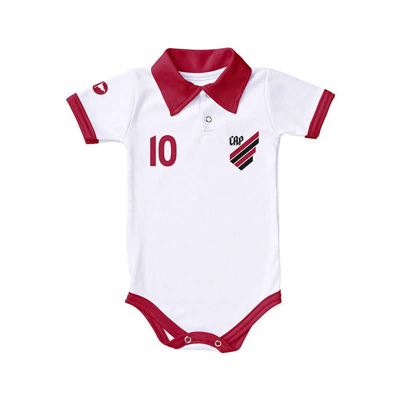 Macacão Body para bebê, modelo polo branco com gola e botões frontais. Tecido leve, manga curta, ideal para o dia a dia. Fácil de vestir e confortável.