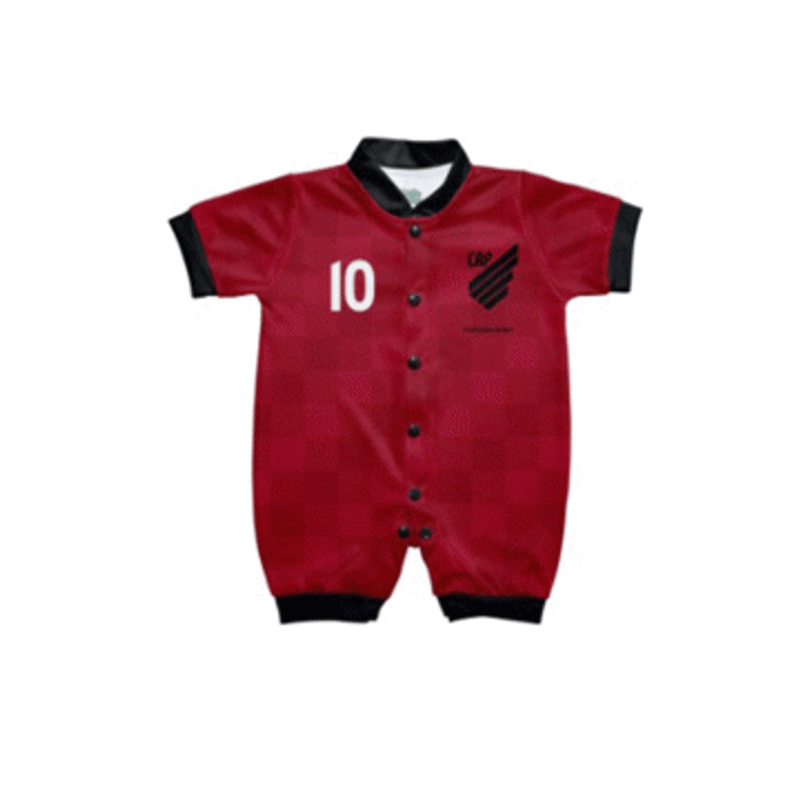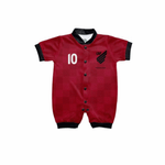 Macacão curto baby vermelho Estilo I do CAP. Confortável e prático para os pequenos torcedores em dias quentes.
