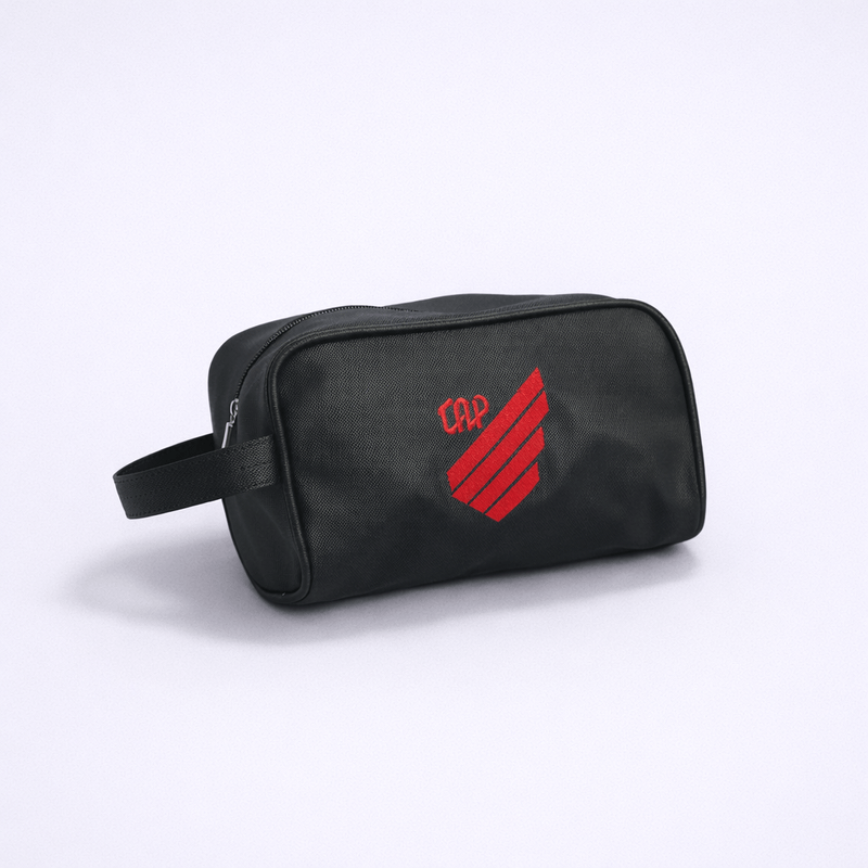 Necessaire em courino com estampa do CAP. Compacta, resistente e ideal para organizar itens pessoais com estilo rubro-negro no dia a dia ou em viagens.