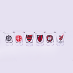 Kit Shot com 6 copos, simbolizando a evolução dos escudos do Athletico. Da fusão do América com o Internacional, com escudos históricos, até os atuais. Ideal para presentear ou usar nos dias de jogo. Edição limitada.