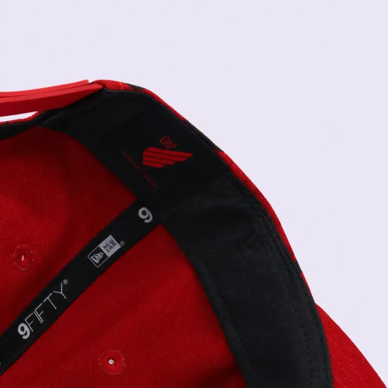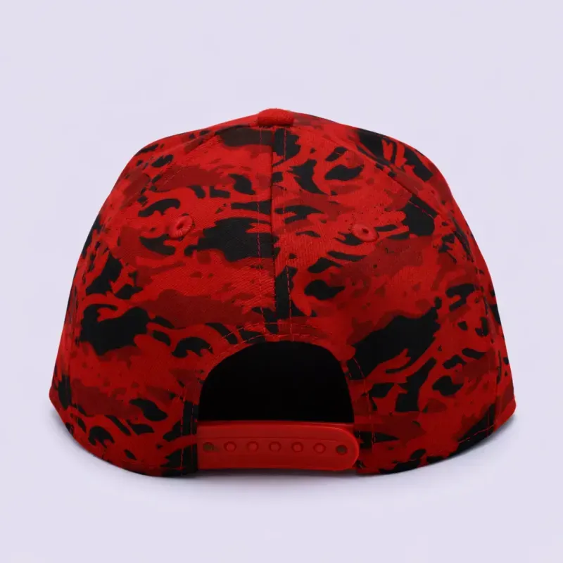 Boné New Era com aba reta e estampa camuflada. Modelo ajustável.