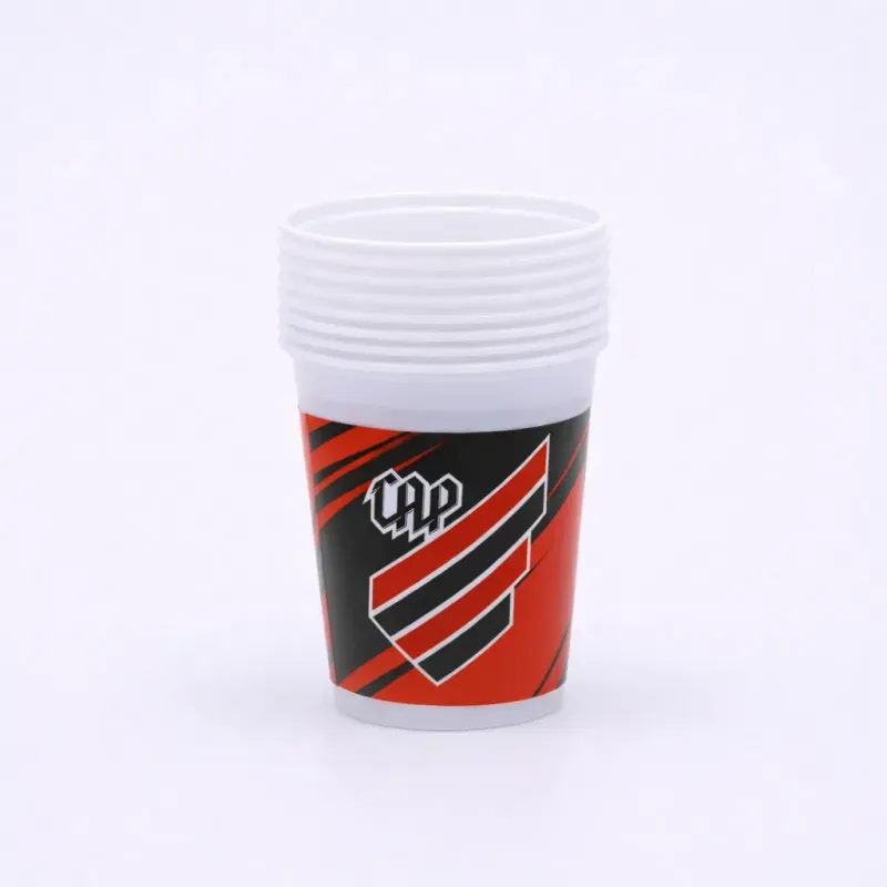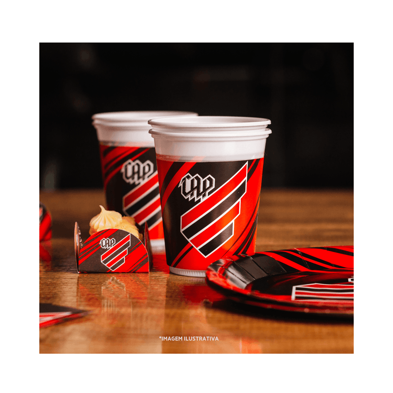 Pacote com 8 copos descartáveis com estampa do Athletico. Ideal para festas, confraternizações e aniversários.