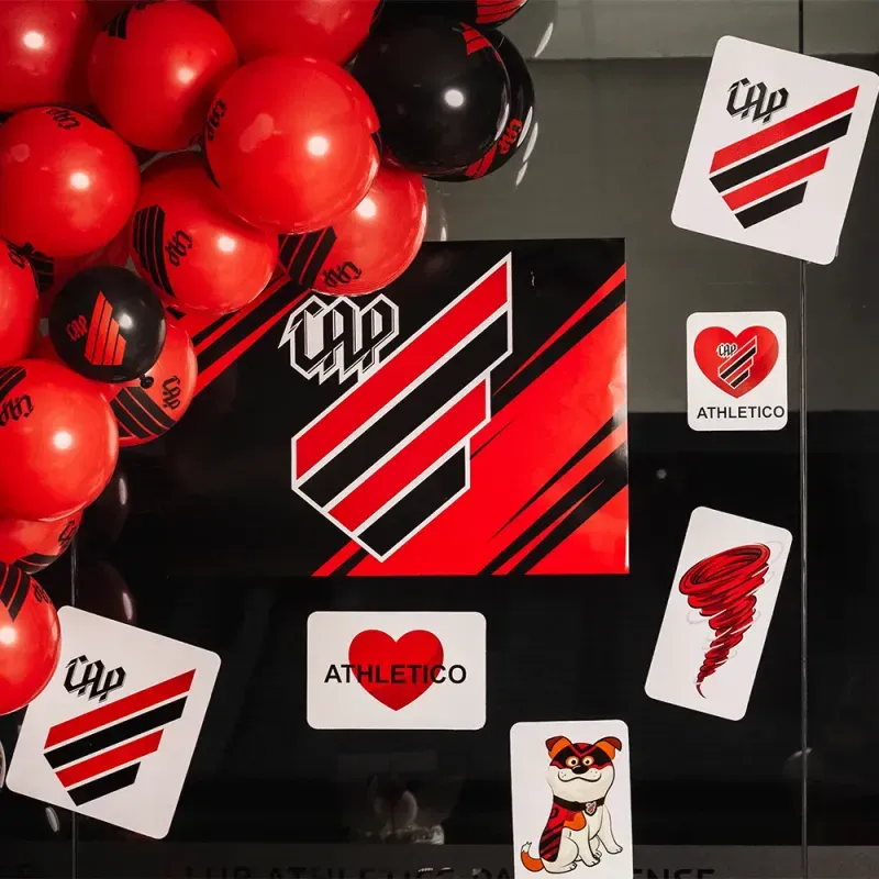 Painel decorativo com 7 peças temáticas do Athletico Paranaense. Ideal para deixar a festa ainda mais rubro-negra e cheia de estilo.
