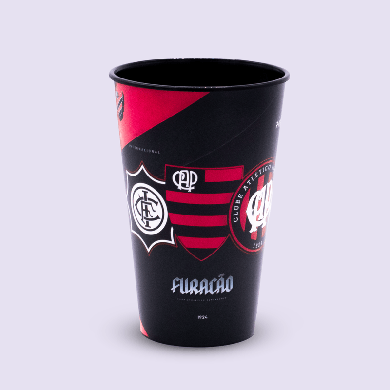 Copo plástico com capacidade de 550ml e estampa inspirada na revolução dos escudos do Athletico. Leve, resistente, ideal para o uso diário.